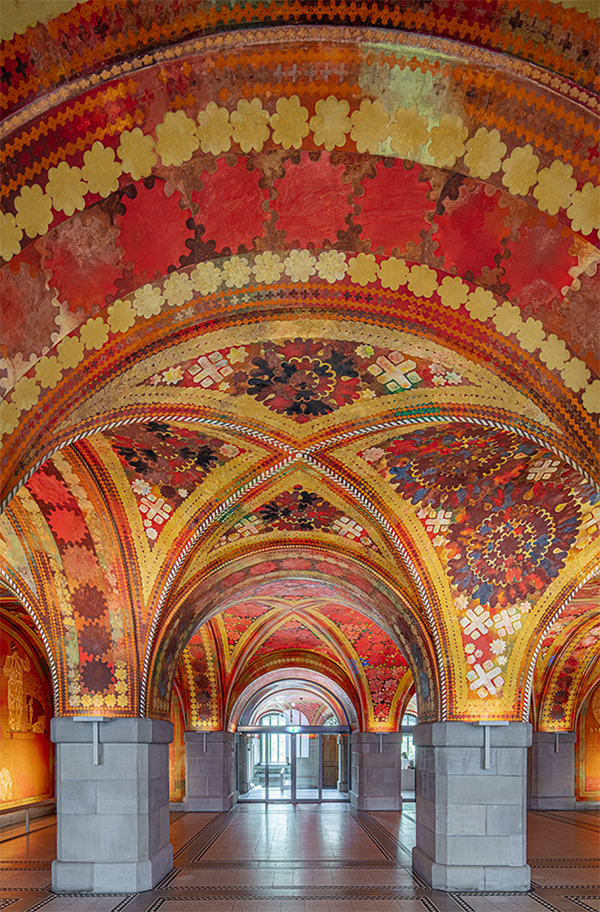 Ein Prestigeauftrag für Augusto Giacometti, der ihm grosse Anerkennung einträgt. Von 1923 bis 1926 malt der Künstler mit seinen «Gehilfen» Giuseppe Scartezzini (1895–1967), Jakob Gubler (1891–1963) und Franz Beda Riklin (1878–1938) das Gewölbe und die Wände der mehrschiffigen Eingangshalle aus.