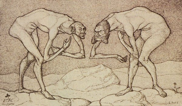 «Zwei Männer, einander in höherer Stellung vermutend, begegnen sich». 1903. Zentrum Paul Klee, Bern. |