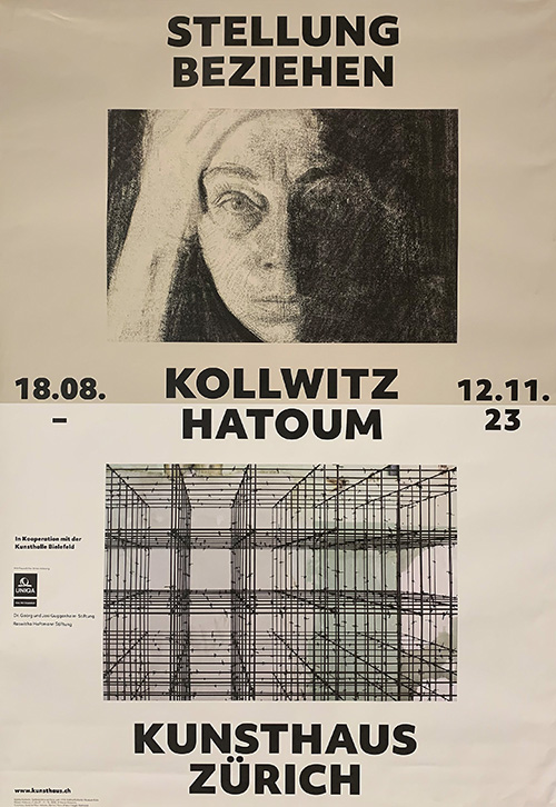 Die Ausstellung im Kunsthaus Zürich präsentiert rund 120 Arbeiten von Käthe Kollwitz sowie fünf Installationen von Mona Hatoum. Sie wird in Kooperation mit der Kunsthalle Bielefeld und dem Käthe Kollwitz Museum Köln ausgerichtet.