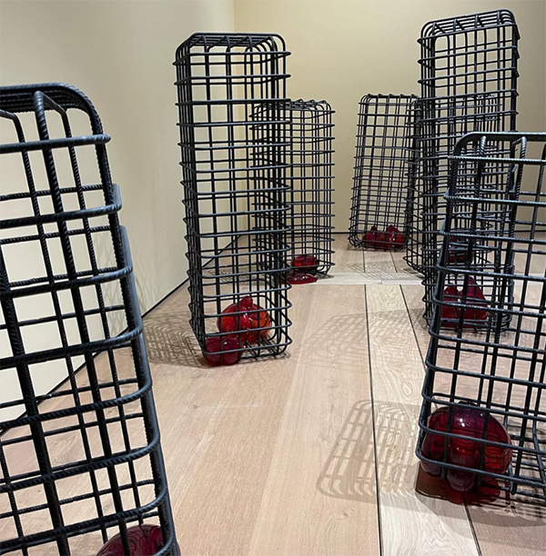 Die Arbeiten der 1952 in Beirut geborenen Künstlerin Mona Hatoum ergänzen die Kollwitz-Ausstellung. Hatoum weilte 1975 in London, als der Bürgerkrieg im Libanon ausbrach. Wie Kollwitz thematisiert auch Hatoum (Trägerin des Käthe-Kollwitz-Preises von 2010) das Leid, das durch den Krieg verursacht wird.