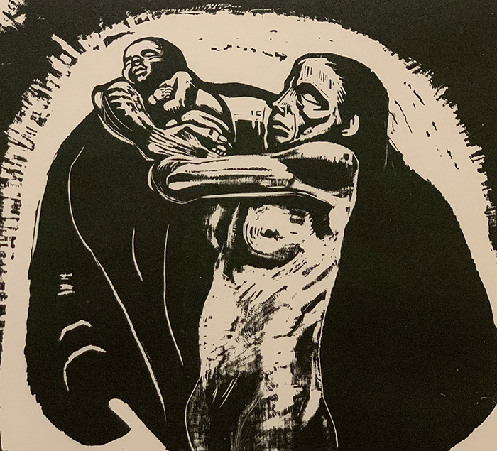 Ihre Serie «Krieg» von 1922 zeigt in dramatischen Holzschnitten hinterbliebene Opfer des Krieges – Mütter, Kinder, Angehörige.