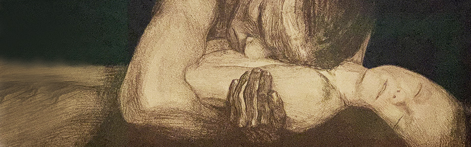 Oder die Liebeszene I aus dem gleichen Jahr, die ein völlig nacktes Paar in körperlicher Vereinigung zeigt – die Frau in ekstatischer Verzückung.