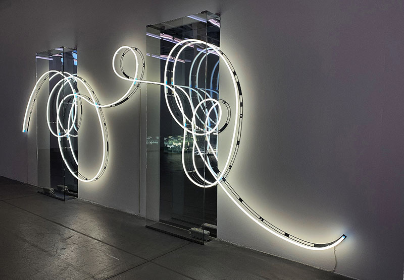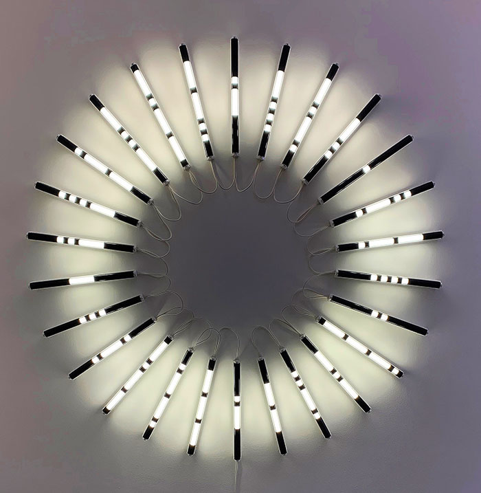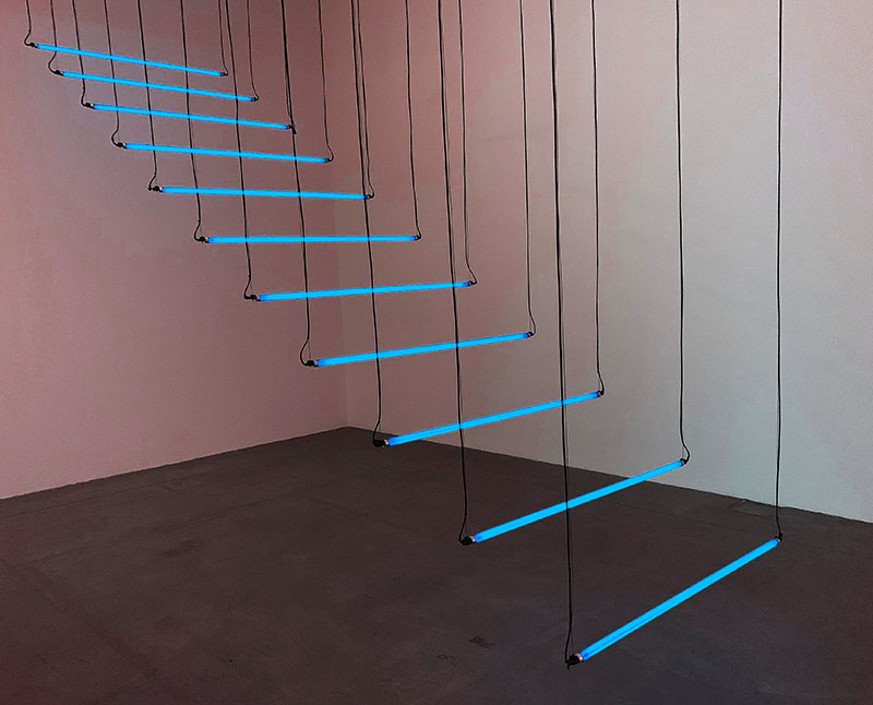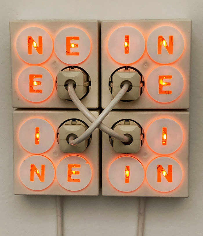 Man kann diese Ausstellung von zwei Seiten her angehen. Die erste – die einfache – ist eine reine Freude fürs Auge. Die Wiener Künstlerin begeistert mit einer erstaunlichen Ideenauswahl von Lichtspielereien und Lichtinstallationen von bemerkenswerter Schönheit. Zum Geniessen.