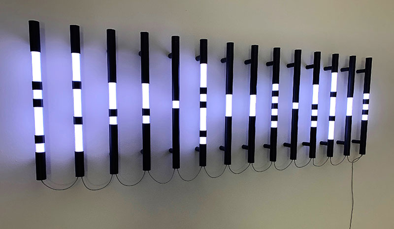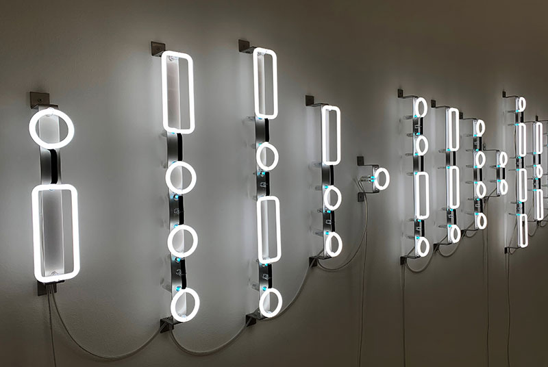 Ab Mitte der 80er-Jahre schafft sie erste Lichtobjekte mit Leuchtstofflampen und fluoreszierenden Pigmenten.