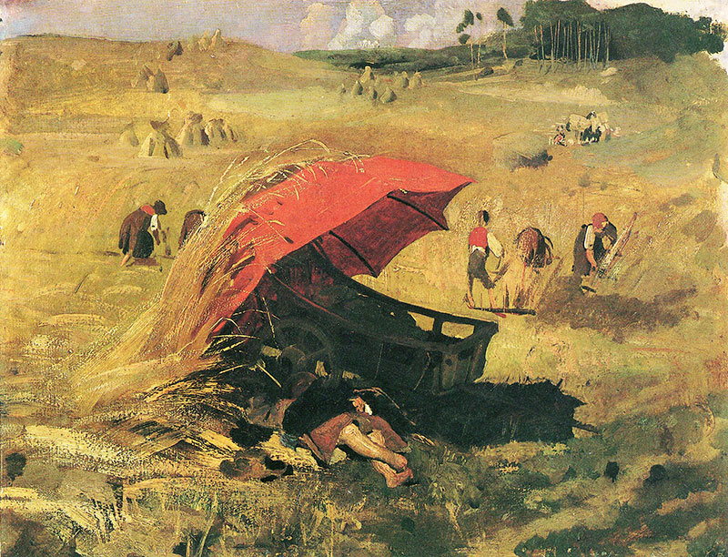 Doch schon bald beginnt er, seine eigenen Vorstellungen umzusetzen. Es ist die Zeit, in der in Frankreich die plein-air-Malerei aufkommt. Lenbachs Werk von 1860 «Der rote Schirm» wird von Kunstkritikern als Frühwerk des deutschen Impressionismus bezeichnet.