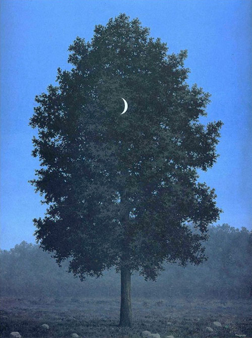 Pflanzenblätter, die nach oben streben in Richtung Freiheit – so wie Vögel diese Freiheit verkörpern. Tatsächlich schaffen es die Pflanzen, zu Vögeln zu werden, aber nun sind diese zu Pflanzen geworden und verlieren damit die Möglichkeit, in die Freiheit zu fliegen. Typisch Magritte.