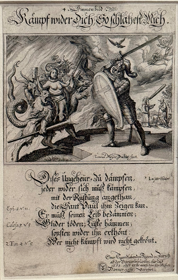 Conrad Meyer (1618-1689). Neujahrsblatt 1653. «Kämpf wider dich, so schlahest mich». Zentralbibliothek Zürich, Graphische Sammlung.