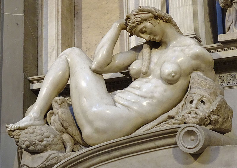 Sein Liebesleben spielt sich mehr mit Jünglingen ab – und diese weiss der Künstler in seinen Skulpturen meisterhaft darzustellen. Aber wenn es um Frauen geht, patzt der grosse Meister schon mal. Wie zum Beispiel bei den Medici-Gräbern in Florenz. Der Körper der Skulptur «Die Nacht» gleicht eher dem eines Mannes... aber mit seltsam aufgepropften unförmigen Brustkugeln.