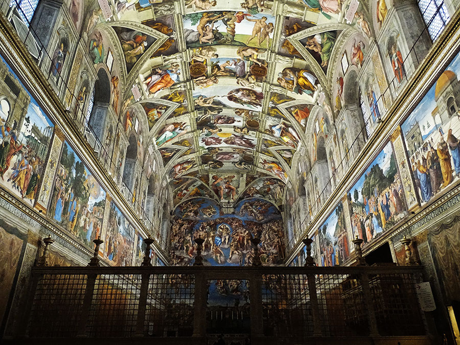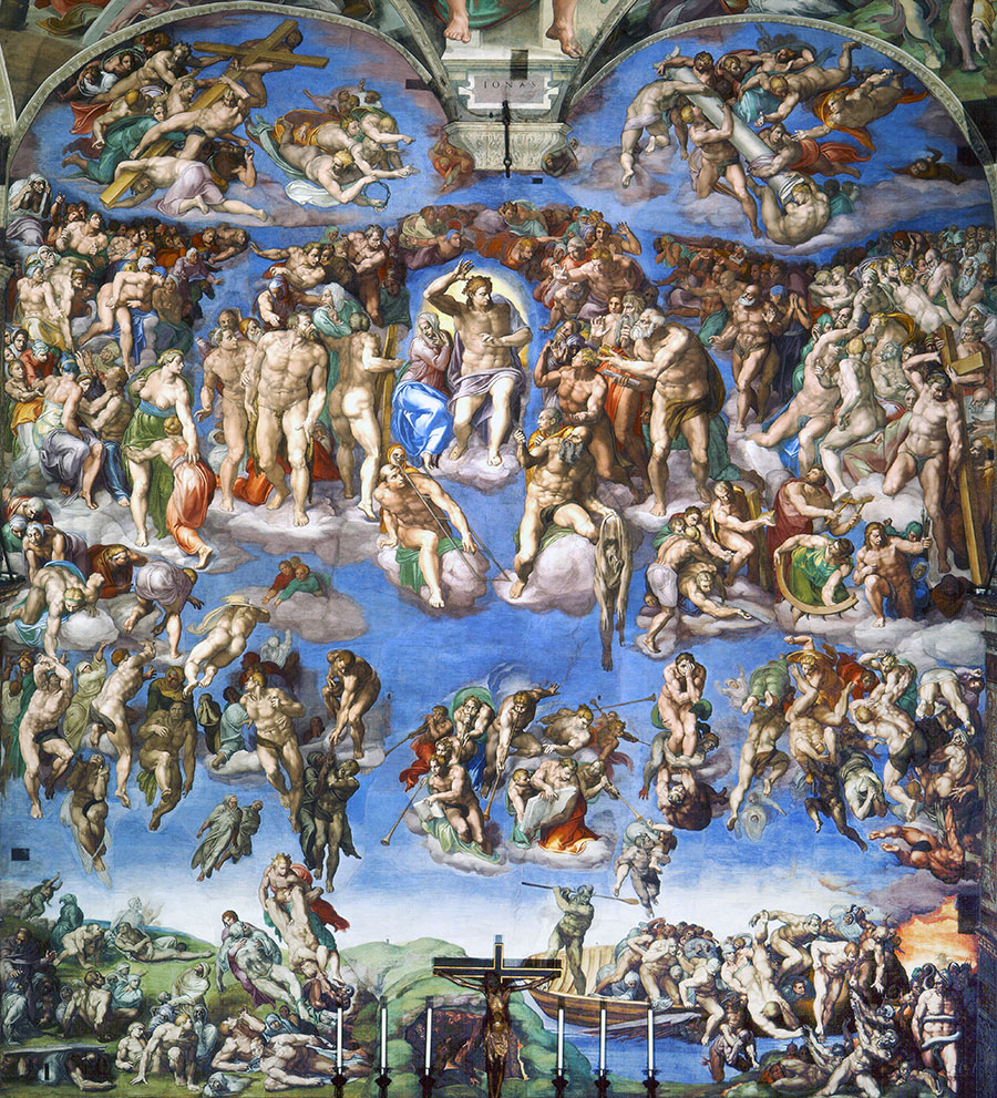 Ein weiteres Meisterwerk Michelangelos – erst Jahrzehnte nach dem Deckenfresko entstanden. Es zeigt das Ende der Welt und das darauf folgende jüngste Gericht. Es hängt zentral über dem Altar der Sixtinischen Kapelle.