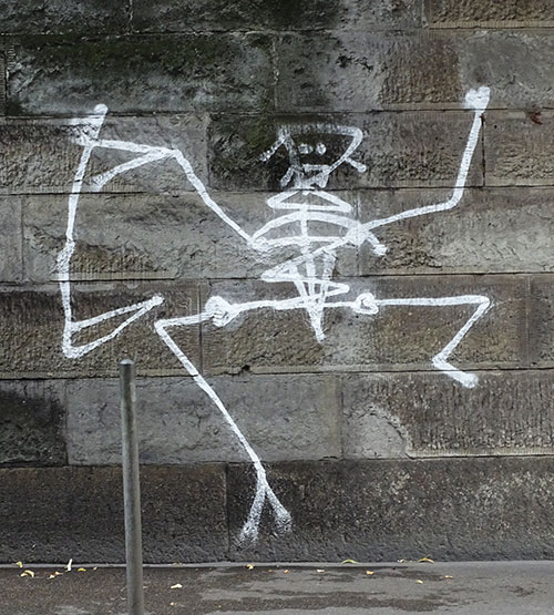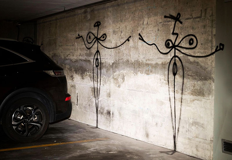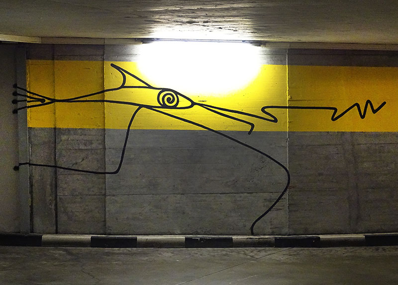 In Zürich hat Naegeli in den 70er-Jahren zwischen 400 und 600 Werke gesprayt. Die meisten wurden weggeputzt. Aber nicht alle. Eine prächtige Sammlung seiner Strichmännchen ist heute noch in der Tiefgarage der ETH zu sehen. Es sind über vierzig. Sie sind Ende der 70er-Jahre entstanden und bilden die grösste Werkgruppe der Schweiz. Sie stehen nicht nur unter Denkmalschutz, sondern wurden zwischenzeitlich auch schon aufwändig restauriert.