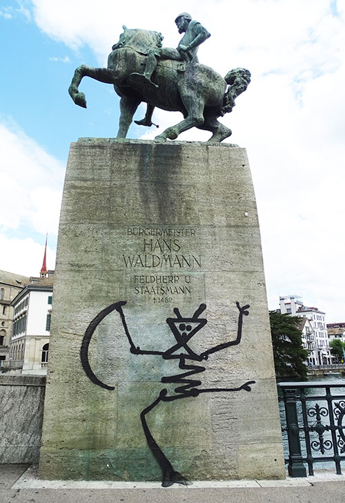 ...aber dann kam Mitte September 2020 die Nachricht, dass der Sensenmann vom Waldmann-Sockel entfernt wurde. Von «Privatpersonen», wie es hiess. Die Stadt habe nichts damit zu tun, meldete der Pressesprecher des Tiefbauamtes, Pio Sulzer. Also nichts mit Naegeli-Denkmal. Der Sockel ist wieder sauber.