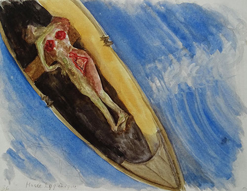 Bei einer Surrealistin muss man ja nicht immer verstehen, was die Werke aussagen sollen. Ist es die Umsetzung eines Traums? Jedenfalls heisst dieses Gemälde «Leiche in einem Boot (Musée hygiénique)». Kunstmuseum Basel.