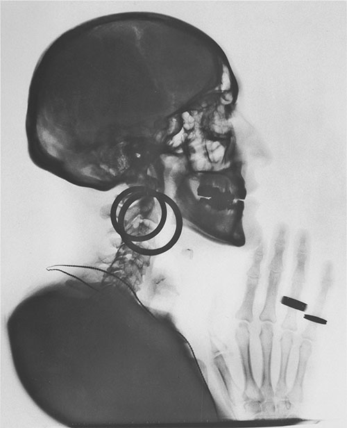 Im Alter von 51 Jahren lässt sich Meret Oppenheim ihren Schädel röntgen und veröffentlich dieses Bild von ihr. Quelle: Press Release des Museo d'arte della Svizzera italiana, Lugano. |