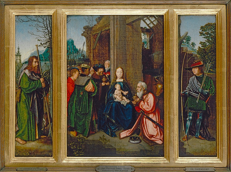 Jan Provost (1465-1529), Triptychon Anbetung der Könige, mit Jakobus und Sebastian, 1500-1510. Kunsthaus Zürich.