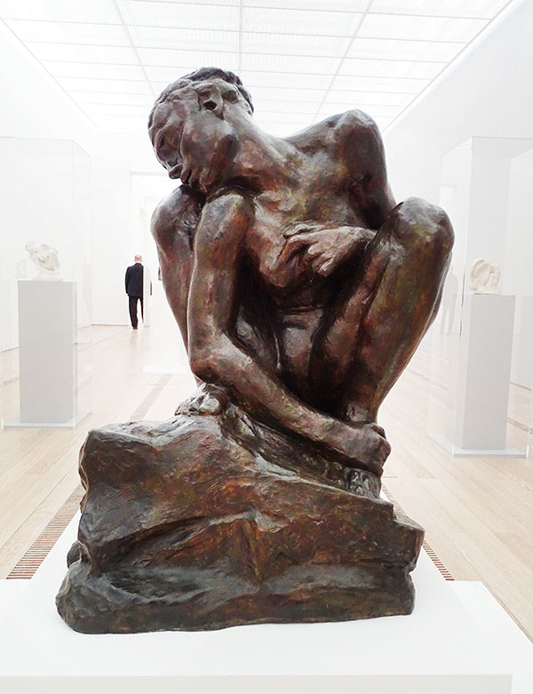 In diesem Werk weicht der Künstler von allen klassischen Darstellungen ab. Eigentlich ist es für das «Höllentor» bestimmt. Im Laufe der Zeit hat Rodin mehrere Figuren daraus isoliert und zu eigenständigen Werken werden lassen (wie der «Denker» oder dieses hier). Ausgangsmaterial ist Terrakotta. Die Bronzeskulptur weist eine Besonderheit auf: Sie ist im Stil «non-finito» gerfertigt, heisst: Gewisse Teile – hier die Füsse und die Hände – sind nur roh bearbeitet.