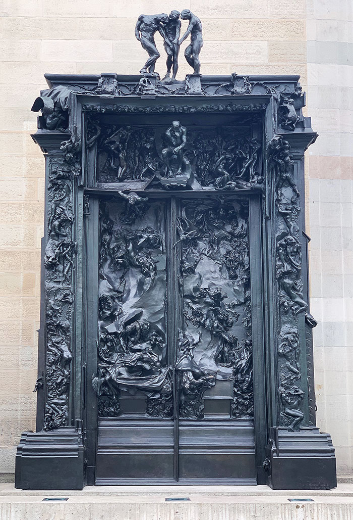 Ein Lebenswerk. Schon 1880 erhält Rodin vom französischen Staat den Auftrag, ein Bronzeportal für das neue Musée des Arts Décoratifs in Paris zu entwerfen. Er arbeitet 37 Jahre daran und baut ständig neue Figuren ein, so auch den «Denker».