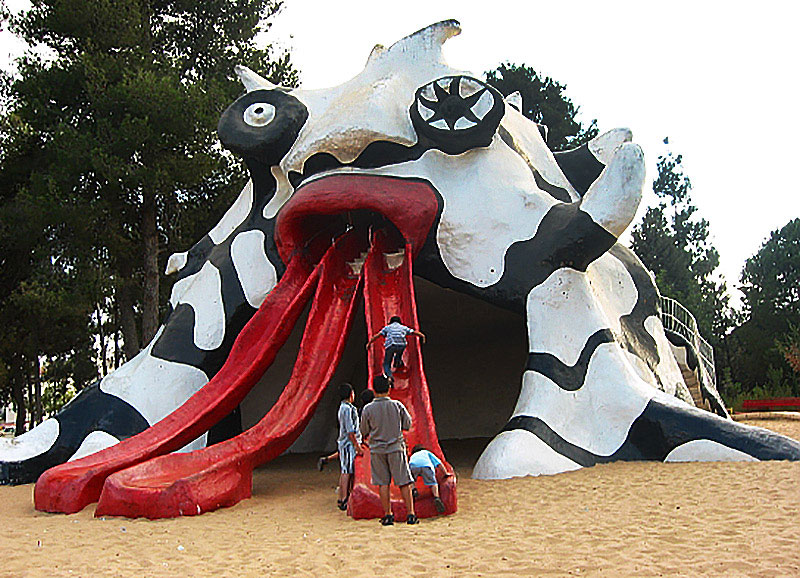 Das Highlight des Rabinovich Parks in Jerusalem. Eine monumentale Spielskulptur mit Monsterkopf und drei Zungen, auf denen die Kinder runter rutschen können. Es wird erzählt, dass der Bürgermeister bei der Einweihung auch rutschen wollte, aber das Gedränge an der Leiter sei so gross gewesen, dass er es nicht schaffte. Die Künstlerin erklärte, dass das die Skulptur sei, auf die sie am stolzesten sei.