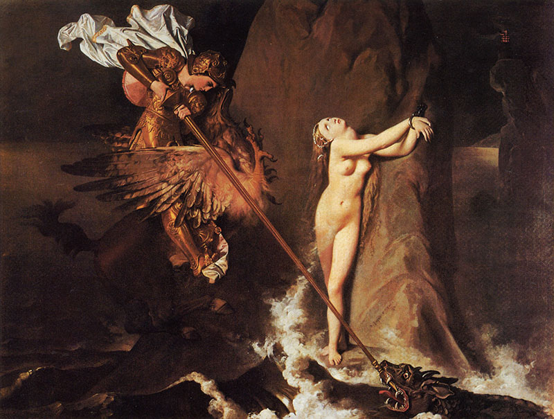 Die Vorlage von Jean-Auguste-Dominique Ingres (1780-1867). Roger délivrant Angélique, 1819. Musée du Louvre, Paris.