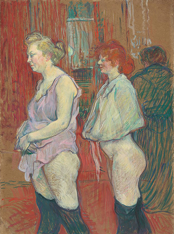 Der Künstler hat einen guten Bezug zu den Bordellen Montmartres. Er verbringt viel Zeit mit den Prostituierten und baut ein vertrauensvolles Verhältnis zu den Frauen auf, er wird gewissermassen selbst Teil des Bordells. Hier wird er voll akzeptiert, was in der feinen Gesellschaft weniger der Fall ist, dort wird er oft als Aussenseiter behandelt. Durch die Nähe zu den Bordellen entstehen zahllose Zeichnungen und Gemälde mit Prostituierten.