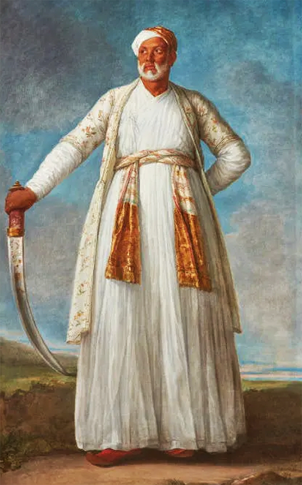 Das Porträt erinnert an den Besuch des indischen Botschafters in Frankreich im Jahr 1788, wo er um Unterstützung gegen die Briten in seinem Land bat. Der Botschafter weigerte sich zunächst, für eine Frau Modell zu stehen. Wieder war es Marie Antoinette, die ihren Gatten dazu bewog, ein Machtwort zu sprechen, sodass schliesslich das Porträt zustande kam. (Quelle: barnebys.de)