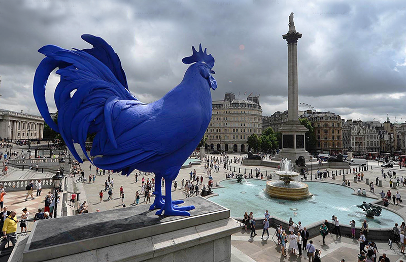 Auch mit Tierskulpturen hat sich Fritsch einen Namen gemacht. Zum Beispiel mit der Monumentalskulptur «Rattenkönig» von 1991-93. Ein Kreis aus sechzehn riesigen Ratten, jede fast drei Meter gross, deren Schwänze in der Mitte zu einem Knoten zusammengebunden sind. Berühmt wurde auch der 2013 auf dem Trafalgar Square in London platzierte blaue Hahn, der «Cock». Dieser «Gockel» soll auf die männerdominierte Kultur hinweisen und auf die Männer, die an diesem geschichtsträchtigen Platz auf den Podesten stehen. Die Künstlerin sieht das mit Humor.