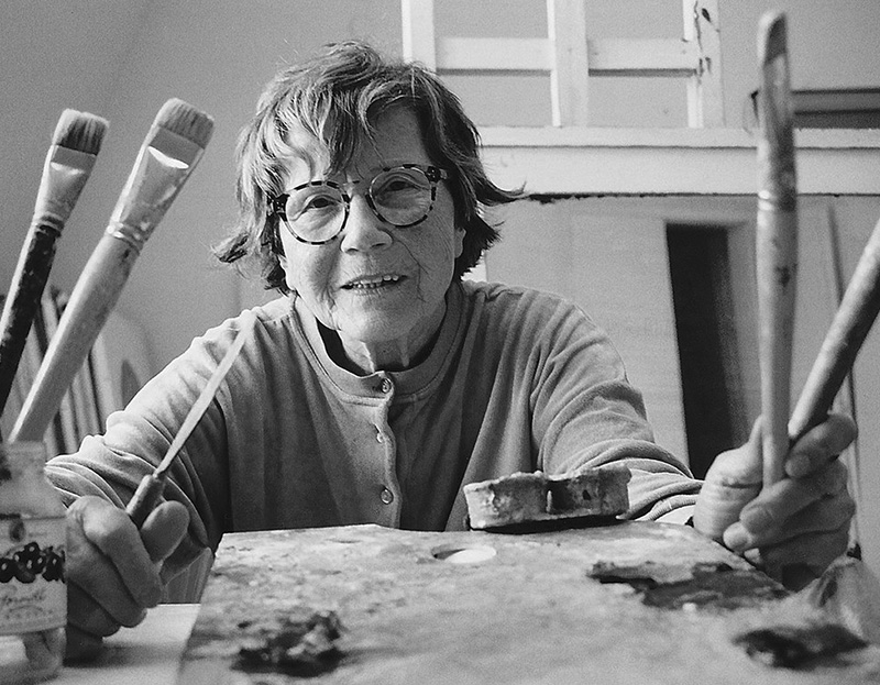 Die in Zürich geborene Verena Loewensberg besucht von 1927-1929 die Kunstgewerbeschule Basel und geht dann in eine Lehre als textile Weberin in Speicher AR. Später studiert sie an der Académie Moderne in Paris. Etwa um 1936 entstehen ihre ersten Werke der >Konkreten Kunst. Man zählt Loewensberg zu den >Zürcher Konkreten. Verena Loewensberg formuliert keine eigene Kunsttheorie und betitelt oder beschreibt ihre Werke auch nicht. Sie sagt von sich: «Ich habe keine Theorie, ich bin darauf angewiesen, dass mir etwas einfällt».
