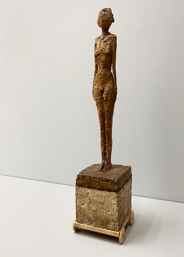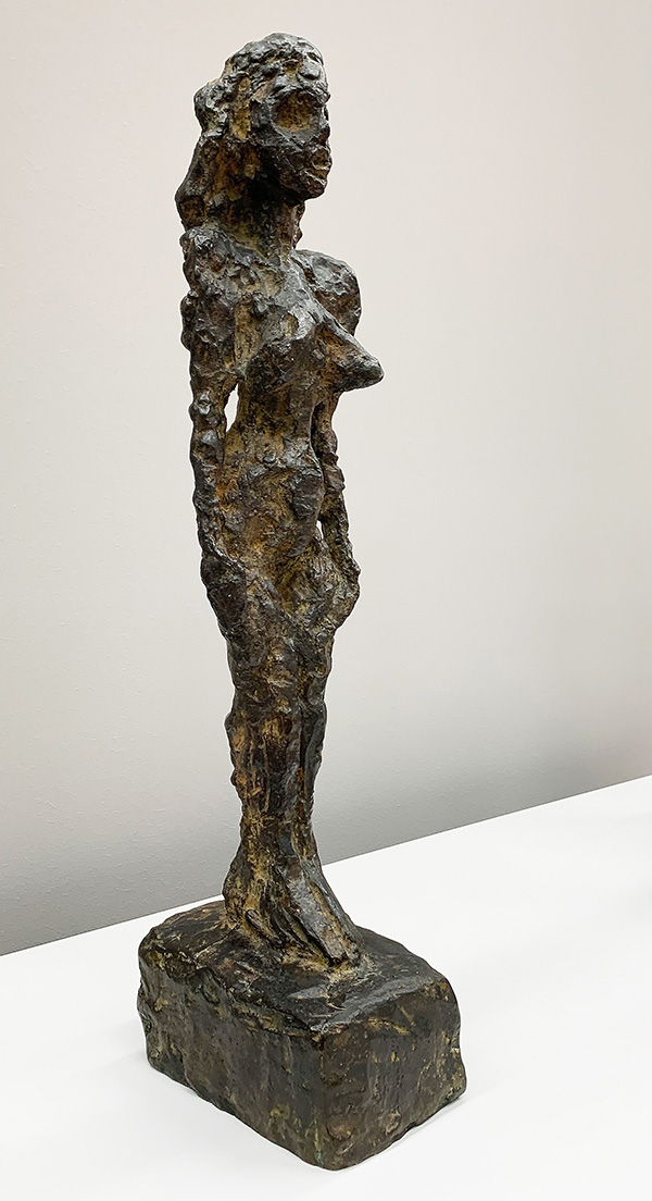 Für die Figur «Nu debout», die fünf Jahre später (1953) entsteht, dient keine Vision mehr als Vorlage, sondern ein lebendiges Modell – es ist seine Gattin Annette. Die Skulptur kommt relativ naturalistisch daher, man glaubt sogar, das Gesicht Annettes zu erkennen. Zudem modelliert sie der Künstler durchaus fraulich und sinnlich – kein Vergleich mehr mit dem Werk von 1948.