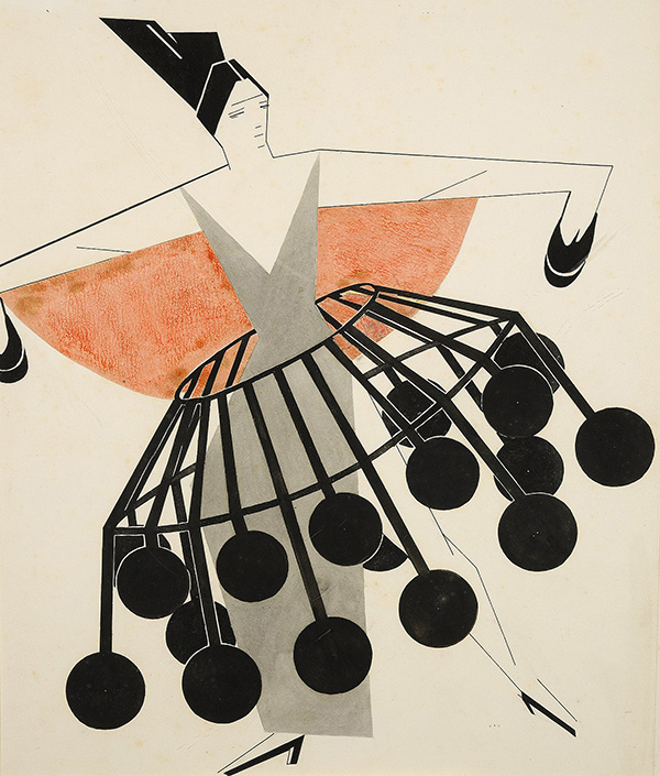 1914 ziehen Gontscharowa und Larionow als Künstlerpaar nach Paris und beschäftigen sich dort mit angewandter Kunst, indem sie Bühnenbilder und Kostüme für Theater und Ballett entwerfen.