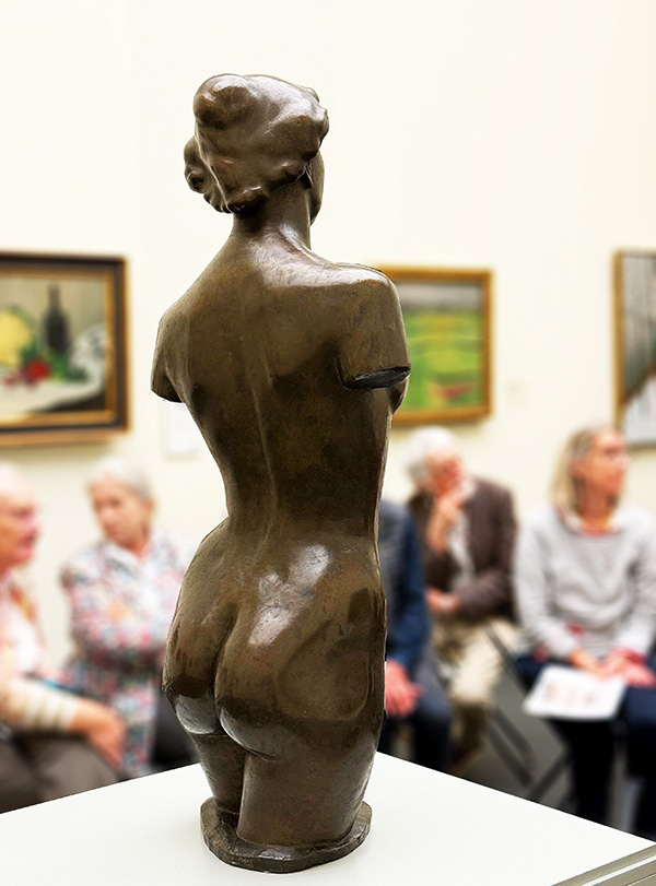 Aristide Maillol gehört zu den grossen Namen moderner Künstler für klassisch-antike Skulpturkunst. Seine Werke orientieren sich an den antiken Schönheitsidealen. Die besprochene Bronzeskulptur stammt aus dem Jahr 1910. Seine Gemahlin Clotilde stand ihm dafür Modell. Die Skulptur wurde an der Ausstellung 1925 im Kunsthaus Zürich gezeigt – also vor genau hundert Jahren. Da es sich um eine Verkaufsausstellung handelte, konnte die Figur direkt vom Künstler erworben werden. Angeboten wurde sie im Katalog unter dem Titel «weiblicher Bronze Torso», zu welchem Preis ist nicht bekannt. Käufer war der Kanton Zürich, dieser schenkte das Werk dem Kunsthaus Zürich.