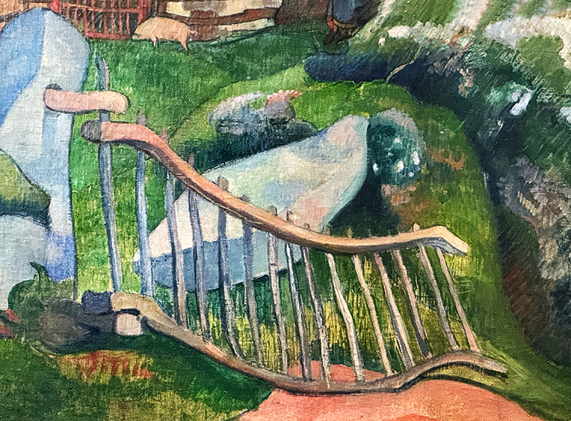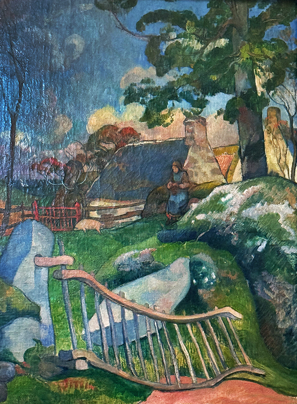 Ab Februar 1889 war er in Pont-Aven in der Bretagne tätig. Was reizte ihn an der Bretagne? Er war auf der Suche nach einem unberührten Ort und einem preisgünstigen Leben. Zudem faszinierte ihn bäuerliches Leben und möglicherweise auch die keltische Kultur der Bretagne, wo es 3000 bis 5000 Menhire (bretonisch: «langer Stein») gibt. Der Stein hinter dem Gatter in Gauguins Gemälde «La barrière» könnte so ein Menhir sein.
