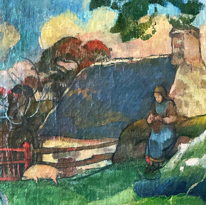 Detail: Die Schweinehirtin und das Schwein.