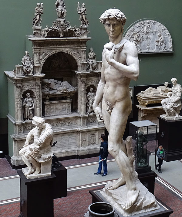 Der Begriff «Kunstobjekt» wird im V&A-Museum sehr weit gefasst. Es sind Exponate aus 5000 Jahren Kultur aus Asien, Nordamerika, Afrika und Europa (wie die Nachbildung von Michelangelos David).