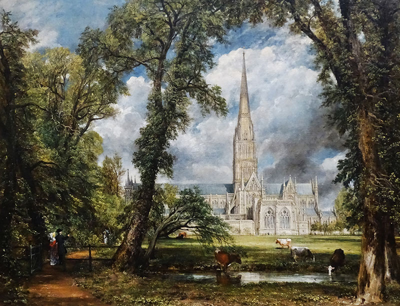 Der geniale Landschaftsmaler hat auch hier seine Spuren hinterlassen, mit einigen eindrücklichen Werken. Dieses hier heisst «Salisbury Cathedral from the Bishops Ground» und stammt aus 1823.