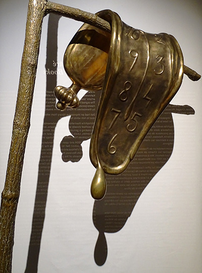 Auf zahlreichen Bildern kommt diese verlaufende Uhr vor (die Idee dazu soll Dalí bei einem verlaufenden Camembert gehabt haben...).