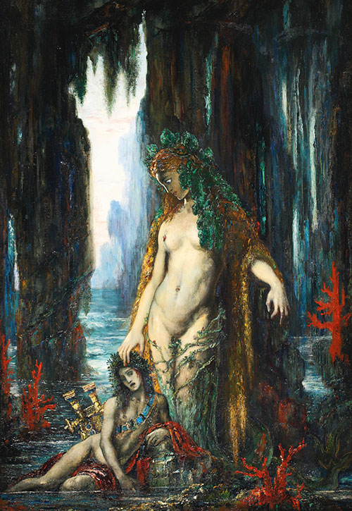 Der Franzose ist ein Freund der griechischen Mythologie und gilt als Vater des Symbolismus. Seine Gemälde und Zeichnungen strotzen nur so vor Fantasie. Dabei geht es nicht nur um die mythischen Geschichten, er will vor allem auch das Unergründliche der Seelen- und Traumwelt verarbeiten. Das Unbekannte und Geheimnisvolle.