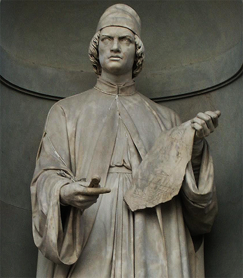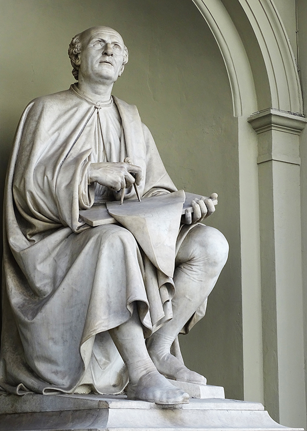 In ihm sehen die meisten Kunsthistoriker den Erfinder der Zentralperspektive. Das dürfte damit zusammen hängen, dass er sich als Erster mit der Theorie dieser Abbildungstechnik auseinander gesetzt hat. Mit Experimenten und Versuchsanordnungen versuchte er, die Zentralperspektive zu ergründen. Allerdings existieren kaum schriftliche Unterlagen über seine Versuchsreihen.